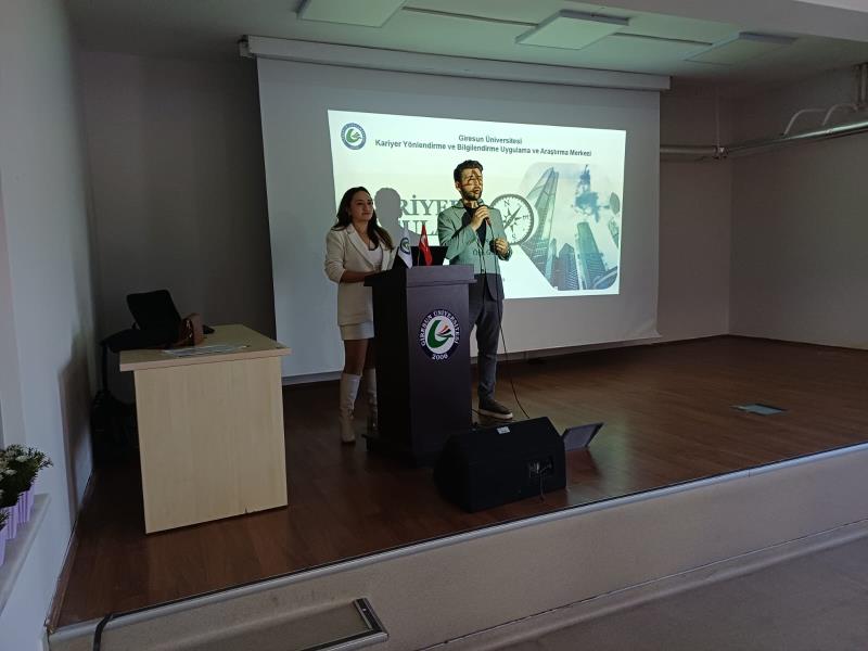 Giresun Üniversitesi Kariyer Yönlendirme ve Bilgilendirme Uygulama ve Araştırma Merkezi tarafından düzenlenen Kariyer Pusulası Eğitim Seminerleri başladı. Kariyer Merkezi Müdürü Doç. Dr. Nurullah ÇALIŞ ve Kariyer Merkezi Uzmanı Öğr. Gör. Dr. Yasemin ÇAKIR tarafından yürütülen seminer 13.10.2025 günü saat 13:00' da Yüksekokulumuz konferans salonunda gerçekleştirildi. Öğrencilerimizin kariyer yolculuklarına ışık tutmayı amaçlayan bu seminerlerde; kariyer planlaması, hedef belirleme ve mesleki gelişim konularında bilgilendirmeler ve farkındalık çalışmaları yapıldı.
